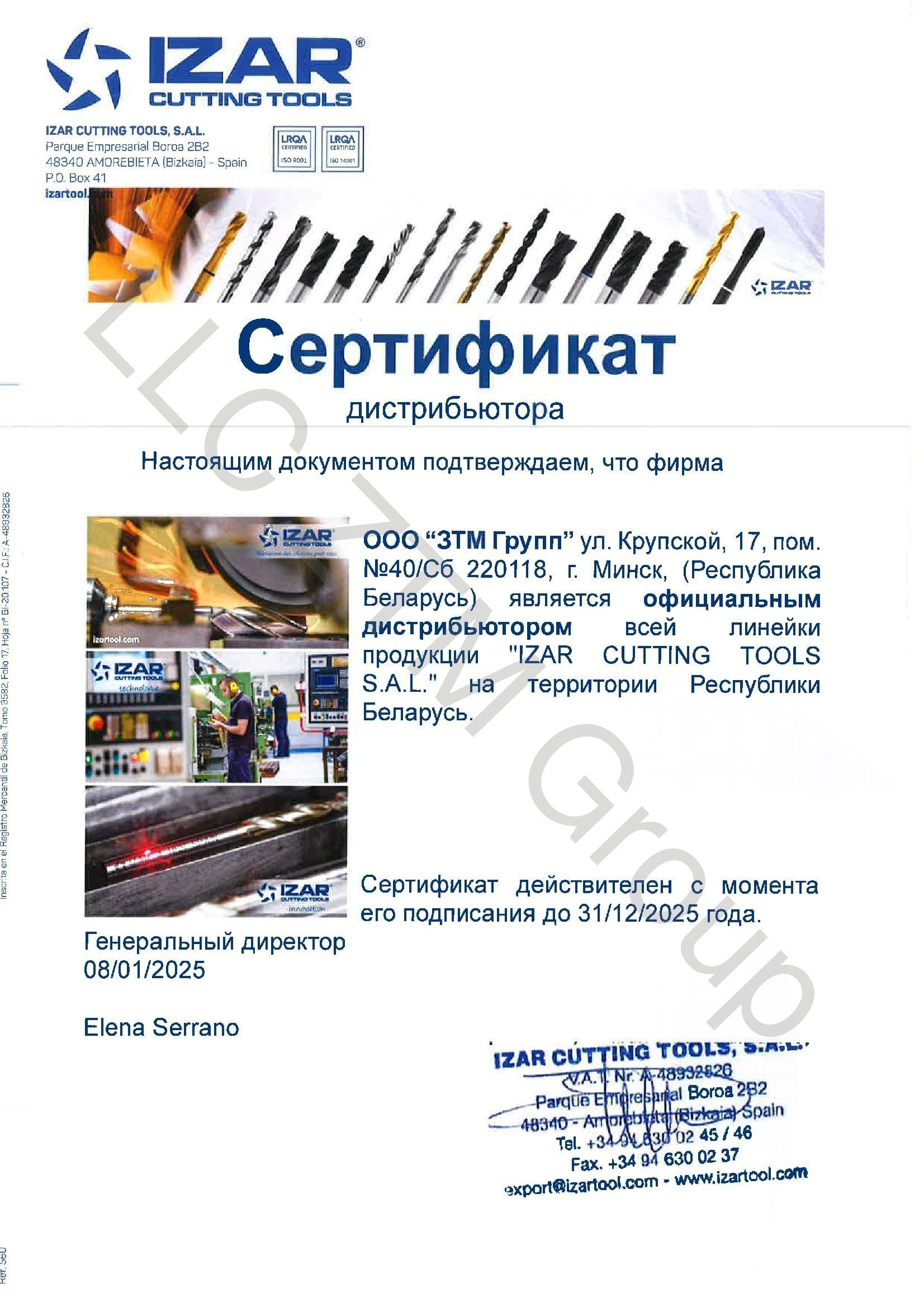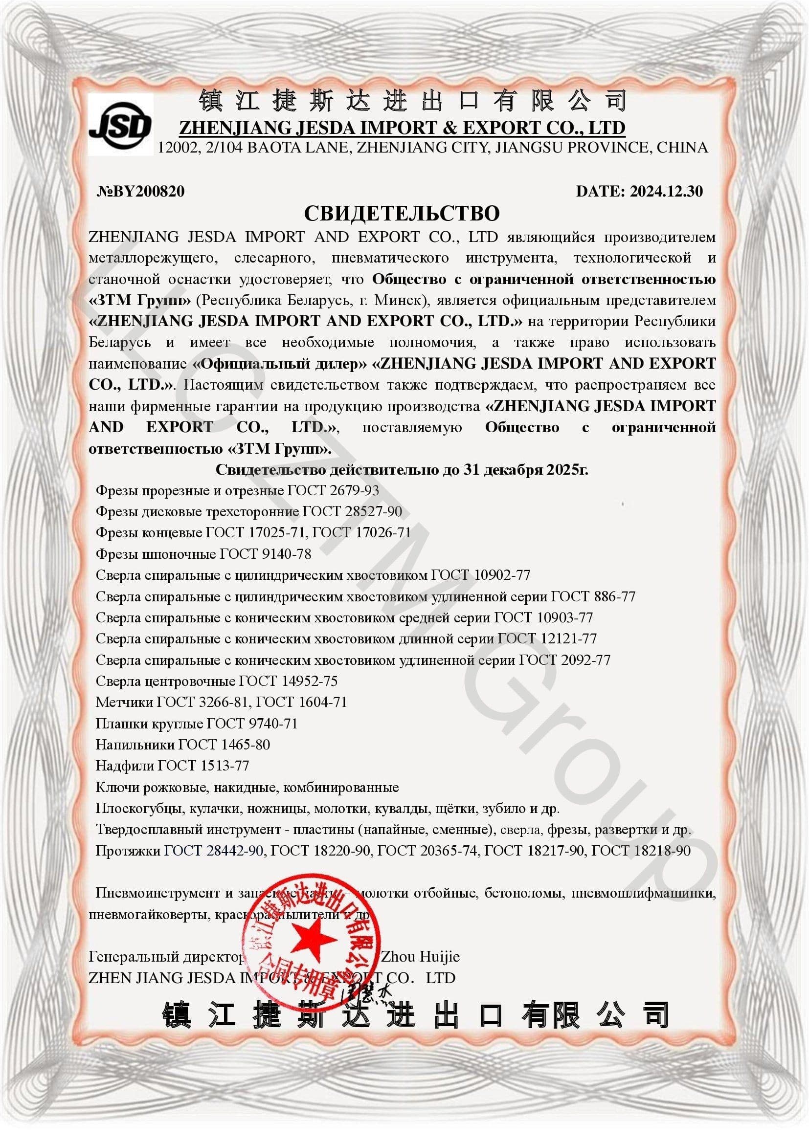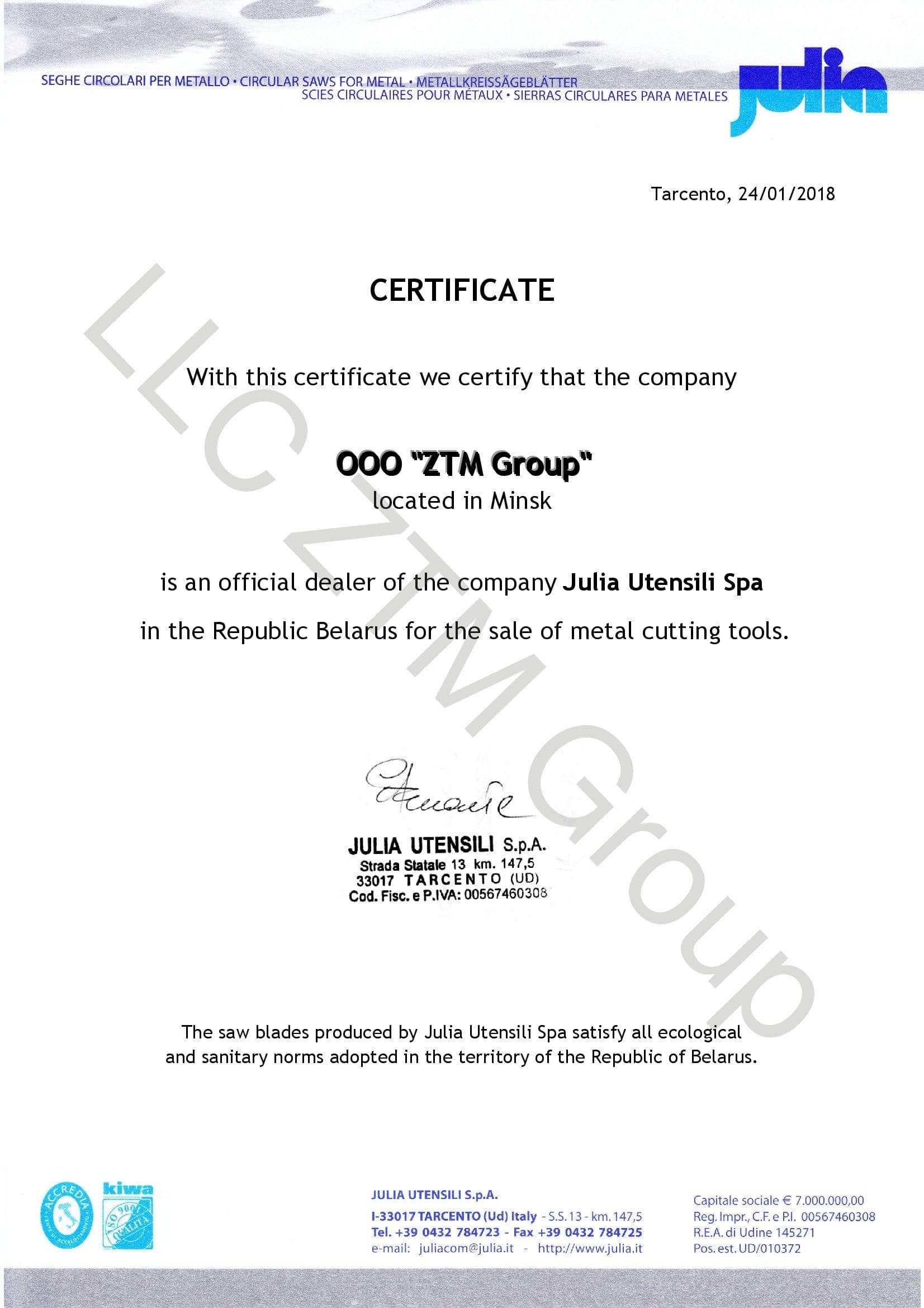 Весь ассортимент продукции сертифицирован в соответствии с Техническим Регламентом Таможенного Союза 010/2011, который регулирует безопасность машин и оборудования (Евразийского экономического союза), и направляется на предприятия Республики Беларусь.