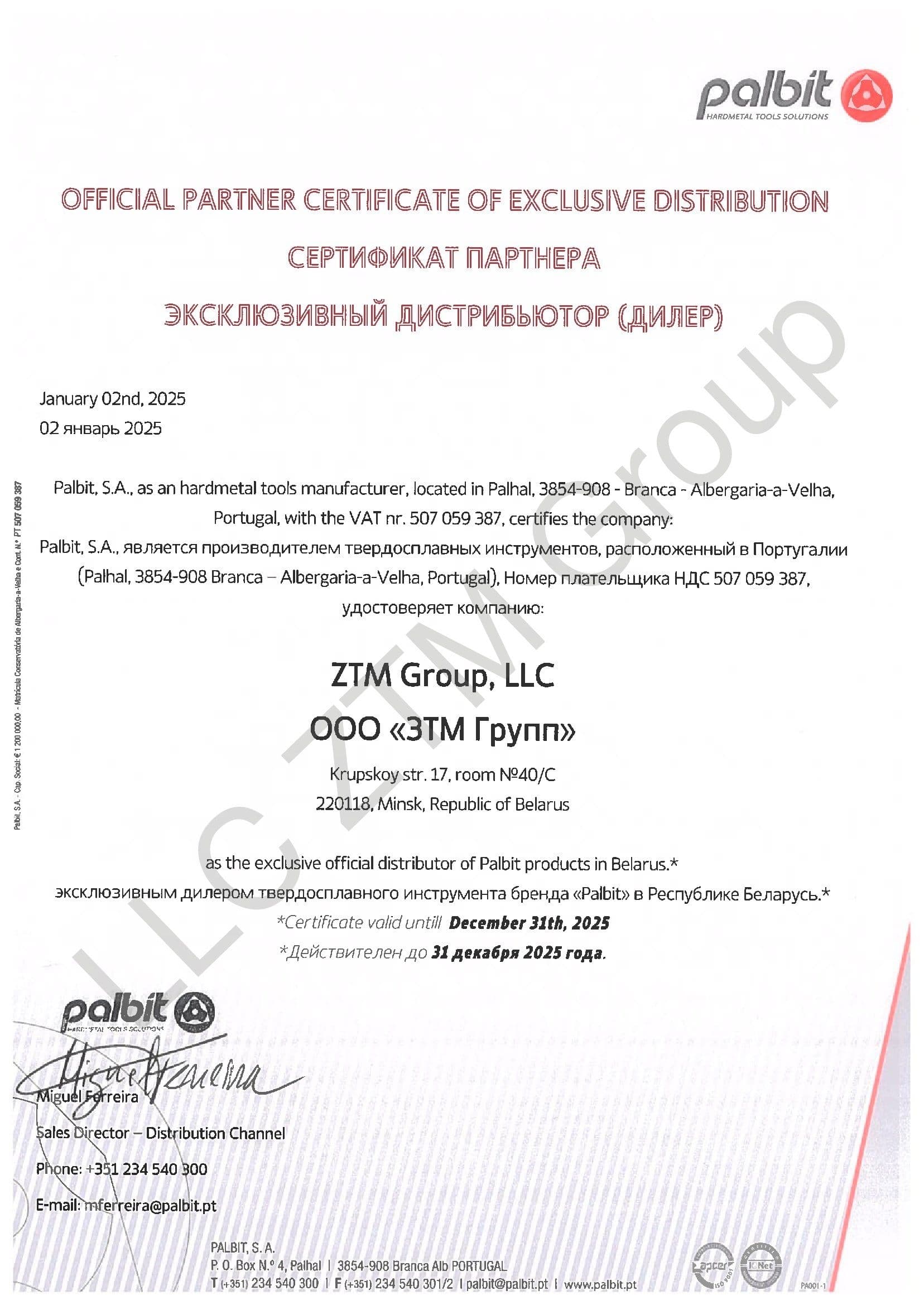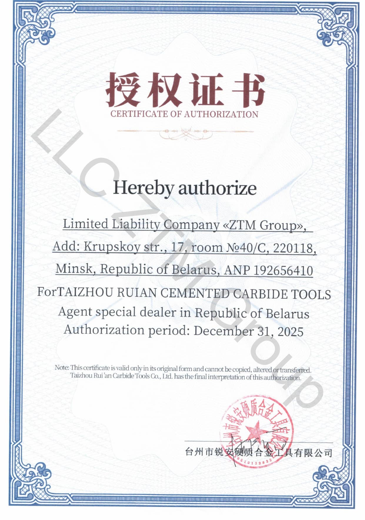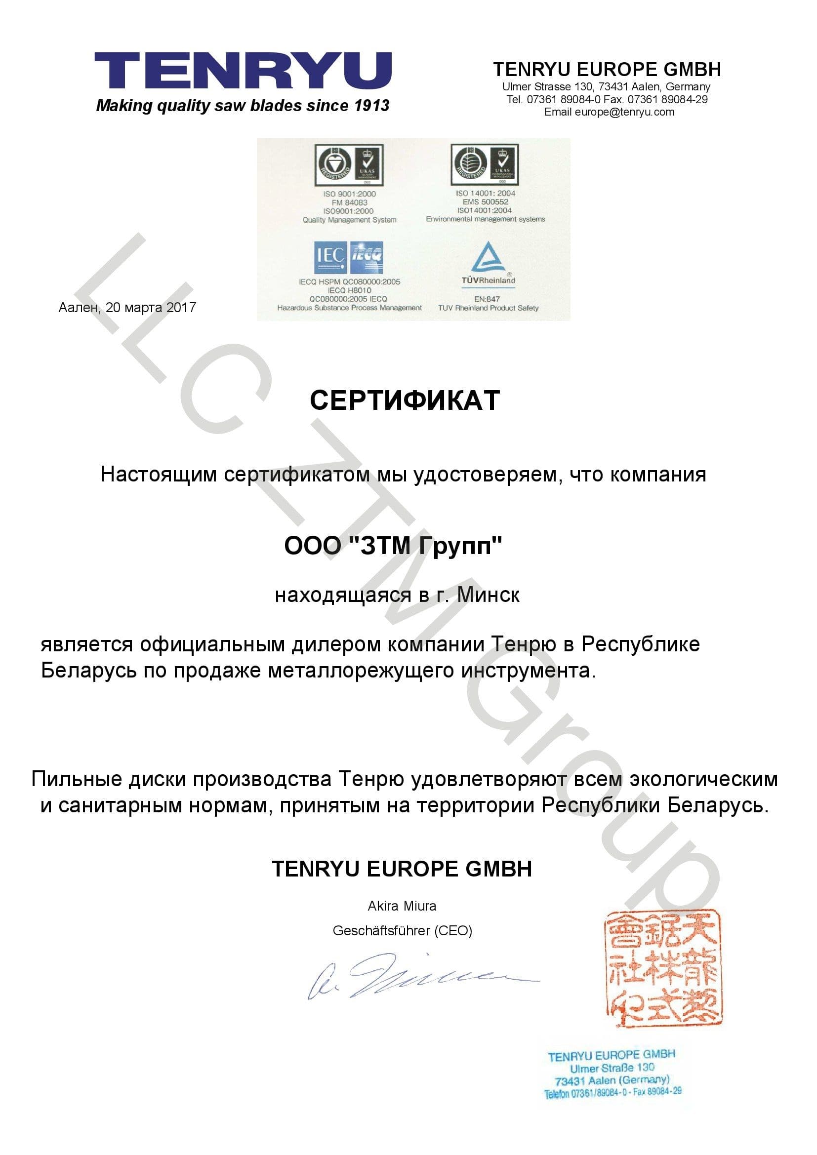 Весь ассортимент продукции сертифицирован в соответствии с Техническим Регламентом Таможенного Союза 010/2011, который регулирует безопасность машин и оборудования (Евразийского экономического союза), и направляется на предприятия Республики Беларусь.